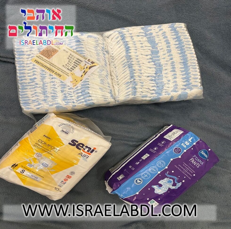 פחתי קרוב ל30 לשוניות שונות עם חיתולים במידות 6, 7, 8 כולל תחתוני פיגמה לילדים עד משקל 55 קילו וחיתולים למבוגרים לפינוק מיוחד. לרגע חשבתי לקנות את הכול… אבל אז חזרתי למציאות.