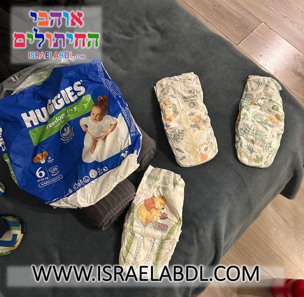שלושה סוגים של חיתולים שכולם לא מאותה מדינה שאני בא. מה היה מאמין, התקלחתי לבשתי חיתול מידה 6 עם סימבה ונרדמתי עם דובי וחיוך.